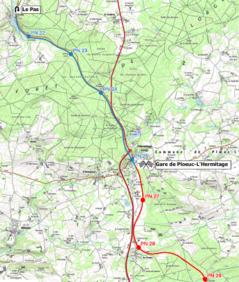Les départs se font depuis la gare de Plœuc-l’Hermitage, dans la quartier de Paly qui est en fait le quartier de la gare. Ce quartier s’est développé simultanément à l’augmentation du tonnage de pommes de terre (le Belle du Lié) expédiés dans tout la France depuis cette gare.